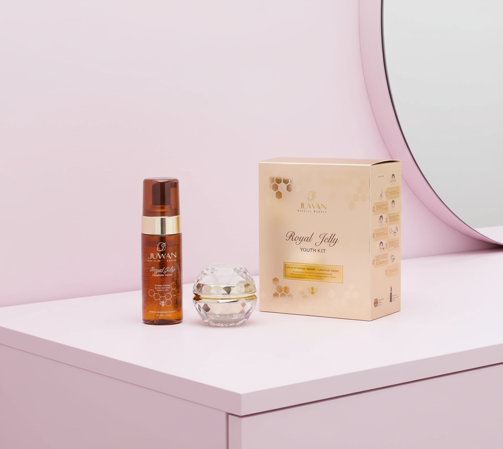کیت مراقبت پوست رویال ژلی به افزایش انرژی سلولهای پوست کمک کرده و موجب افزایش کلاژن سازی پوست و در نتیجه جلوگیری از پیری زودرس آن میشود. این محصول در جوانسازی پوست و رفع چین و چروکهای آن موثر است. نحوه استفاده از کیت مراقبت پوست رویال ژلی ژوان: روزی دوبار صبح و شب، ابتدا توسط فوم شستشو پوست صورت را از هرگونه آلودگی پاک کنید و سپس کرم رویال ژلی را روی سرتاسر پوست تمیز صورت پخش کنید.